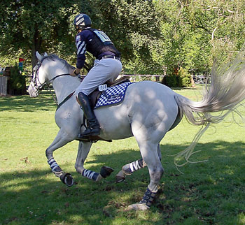 Before learning to jump, your instructor will teach you to maintain two-point when not jumping. Two-point takes considerable balance and muscle strength, and should be practiced before a rider learns to jump. In two-point the rider doesn't just lean forward over the horse's neck, but balances their weight farther back over the seat of the saddle. In this way the rider isn't off balancing the horse, but is centered over the horses body in a slightly crouched position.